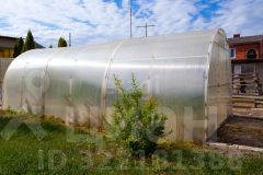На огороде, площадью 4.5. сотки, расположены теплица, хозпостройка, летний душ, а так же черешня, яблони, персики, малина, газон