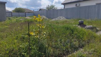 На участке залит фундамент под дом.Также в конце участка залит фундамент под баню.