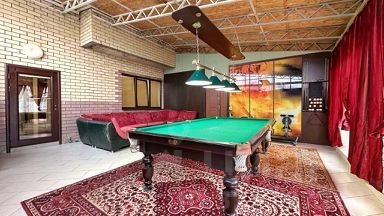 Дом расположен на 4 сот. земли. Передний и задний двор накрыт навесом, установленно витражное остекление, что не допускает попадание в дом пыли, грязи, дождевой воды. Так же имеется гараж на две машины, мастерская и кладовые зоны. На участке есть бассейн, зона барбекю с выложенным из кирпича мангалом, летняя кухя с газовыми обогревателями в холодное время года.