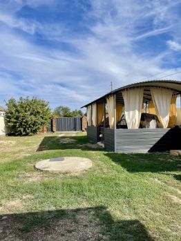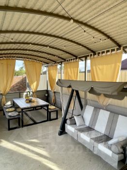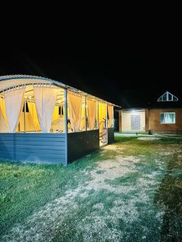 крытая беседка 30 м² с качелями, освещением и большим столом;