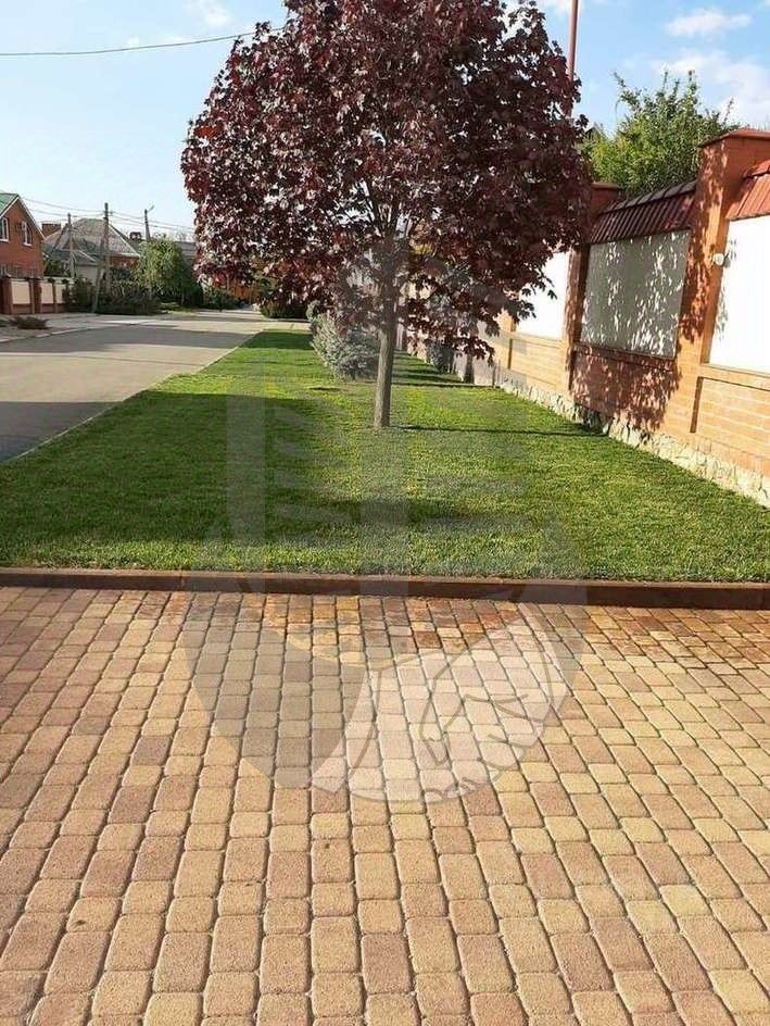 Подъезд к дому-асфальт. Кирпичный забор.