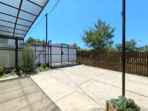 К дому подведены все коммуникации: газ, электричество 15кВт, центральный водопровод, скважина, септик с тремя переливами. Установлен автополив сада. От улицы к дому ведёт забетонированный проезд. Установлены откатные ворота, навес, во дворе парковка на 2-3 автомобиля.