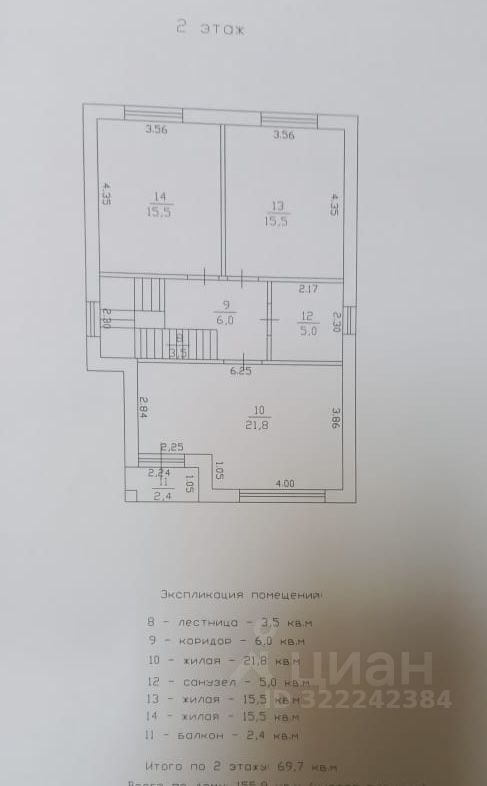 На втором этаже — холл, три изолированные спальни, хозяйская — 22 кв.м с выходом на балкон, ванная комната.