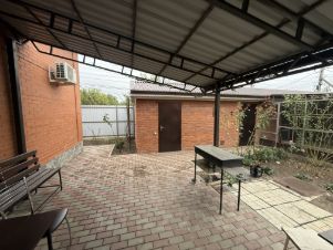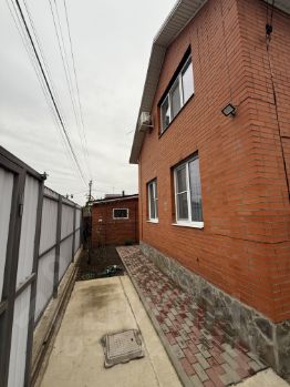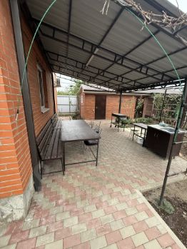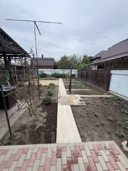 Земельный участок 4 сотки, на котором находятся хорошие кирпичные постройки (с ремонтом внутри: кладовая, сарай, вольер), насаждения (виноград, малина, инжир, клубника, клумбы с парковыми розами). Заезд на 2 машины, подъезд к дому хороший, широкая улица, забор высокий металлопрофиль с откатными воротами.