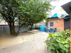 Её площадь составляет 31 кв.м, 2 смежные комнаты - 10,1 кв.м и 8,3 кв.м. Кухня - 8,9 кв.м. Саузел 3,7 кв.м. Постройка требует ремонта, в дальнейшем подойдет для сдачи для отдыхающих. Так же на участке имеется зона отдыха. Во дворе есть многолетние деревья (алыча) и виноград.