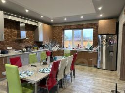 Внутри на первом этаже находится просторная кухня-столовая общей площадью 47,6 кв.м.,