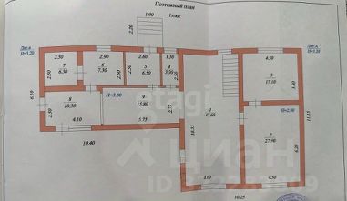 2 жилых комнаты 27,9 и 17,1 кв.м., баня, душевая, санузел, прихожая и коридор.
