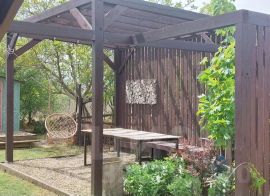 На участке много деревьев и кустарников. Есть место для красивых грядок и бассейна. Также залит фундамент и площадка для гаража с хозяйственным блоком.