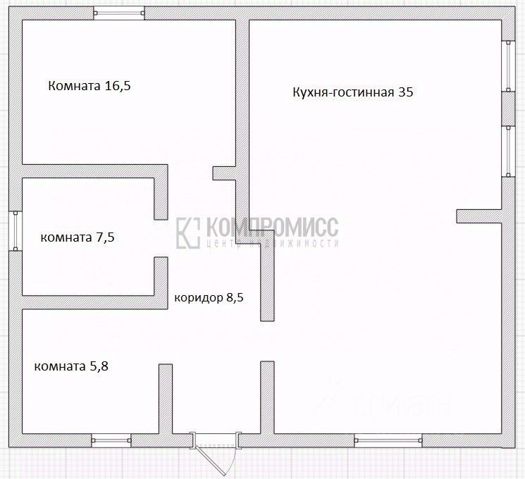 Современная планировка включает две уютные спальни (16,7 и 7 м²), великолепную кухню-гостиную 34 м² для семейных посиделок и приема гостей, совмещенный санузел и практичный коридор.