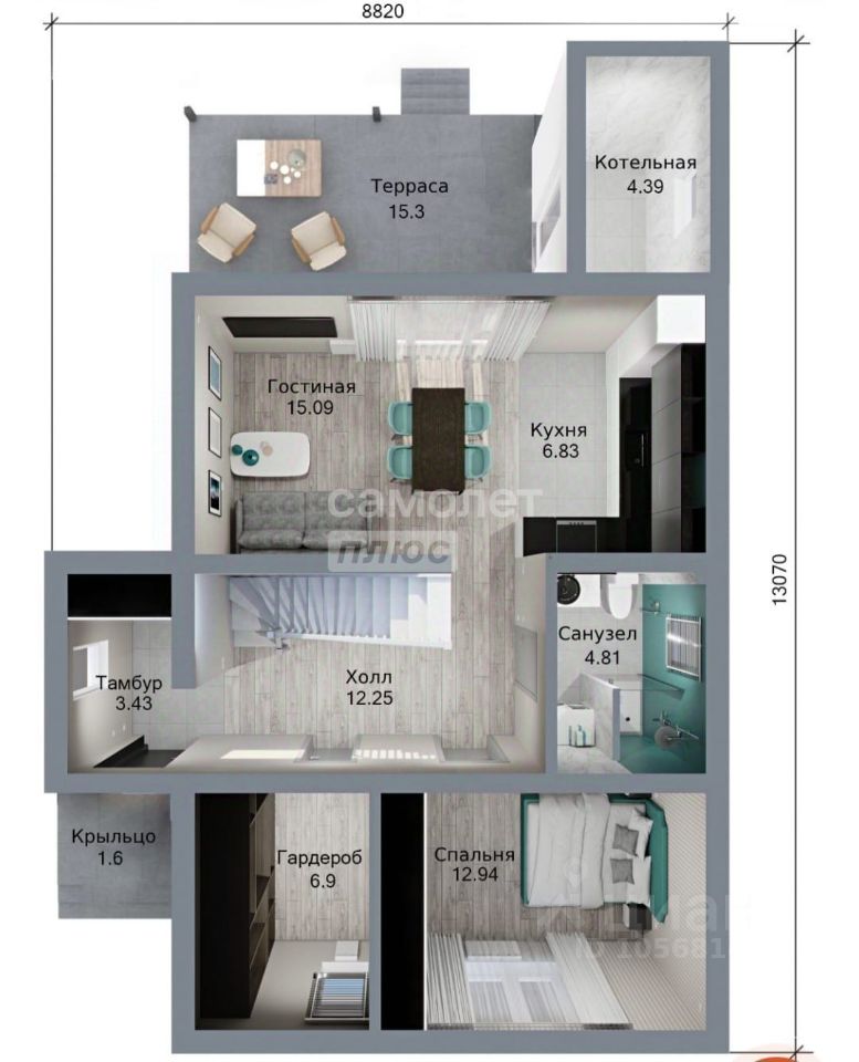 Такое распределение пространства способствует созданию приватных зон для каждого жильца, обеспечивая максимальный комфорт и удобство проживания.