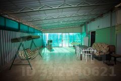 Двор полностью выложен тротуарной плиткой, по периметру установлен профнастил, что делает навес полностью закрытым. На участке расположены хозпостройки для инвентаря и хранения продуктов, скважина для полива с мотором, утепленный кирпичный туалет