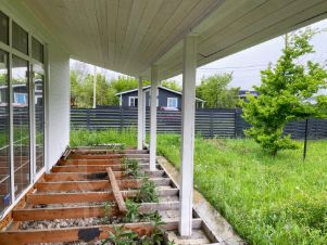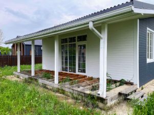 Один из немногих домов в стиле шале в СНТ построенных для круглогодичного проживания. Построено с умом, не на продажу. Стены - железобетонный каркас с заполнением газобетоном 400 мм (!), ближайший аналог Yutong. Основание - жб пояс по 28 буро-набивным сваям, колонны - жб, верхний монолитный пояс, через каждые три ряда блоков - стяжка из двух стержней арматуры. Расчетная сейсмика 8 баллов. Наружная отделка - фиброцементный сайдинг Kmew Япония (сейчас около 6000 рублей за квадрат без учета системы крепления). Окна - энергосберегающие со шпросами (максимальная инстаграмоемкость). Утепление кровли 150 мм. Расчетные теплопотери - 6.2 кВт при температуре самой холодной пятидневки. В переводе - дом невероятно теплый зимой и прохладный летом.