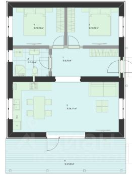 В доме еще две комнаты спальни одинаковой площади 10.16 м2. Санузел площадью 5.23 м2 и коридор 9.75 м2