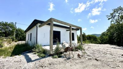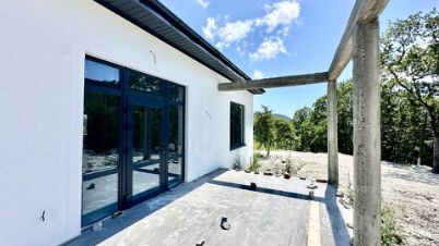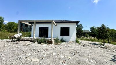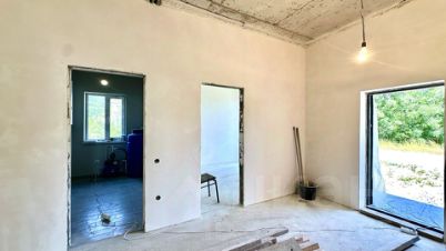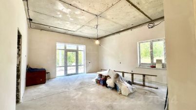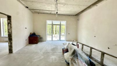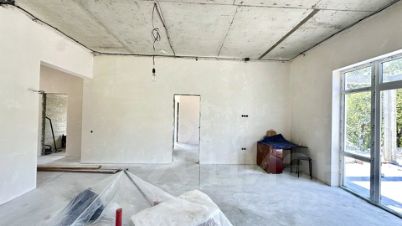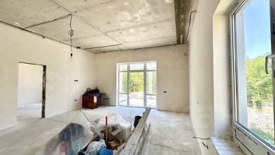 В доме электрический котел установлен, тёплые водяные полы. Выполнена стяжка пола и штукатурка стен, выведена вся электрика с розетками. Установлена скважина 140 м. Крыша - мягкая кровля. Входная дверь стоят, частично закуплена плитка и обои, останется новому владельцу. В доме два сан узла, один в мастер спальне и второй гостевой.