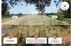 Участок находится в жилом микрорайоне. Напротив улица Яблоневая, которая заселенна, с коммуникациями. До остановки - 200 м. Ходит школьный автобус.