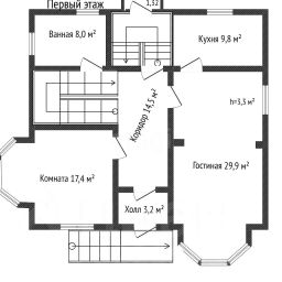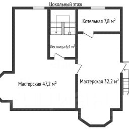 - Площадь дома включает: 6 комнат, где на 1м этаже - гостиная, 2 рабочих кабинета, 3 спальни. Плюс на цокольном этаже две мастерских с котельной площадью 87,2 кв м