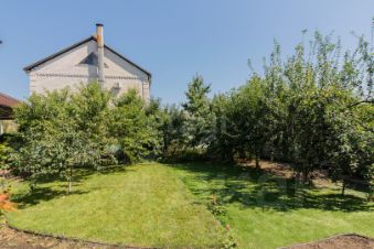 - Ухоженный газон и плодовые деревья на участке и за его пределами.