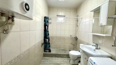 Заведены все коммуникации, газ по меже, вода - скважина, разводка электричества по всему дому, канализация септик герметический, теплые полы в прихожей гостиной и сан узле, забор по периметру установлен с колоннами из кирпича со вставкой - металлопрофиль, двор полностью выложен из тротуарной плитки, обустроен. Отмостка вокруг дома. Кровля металлочерепица. Окна металлопластиковые. Дом очень теплый, утеплен пенопластом, стены - керамзитовый блок и фасад силикатный кирпич желтого цвета. Установлен котел PROTHEM. В сан узле стоит бойлер на горячую воду.