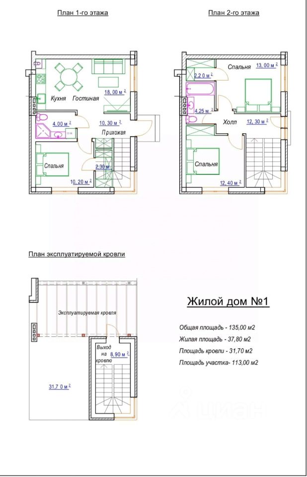 Общая площадь: 135 кв. м