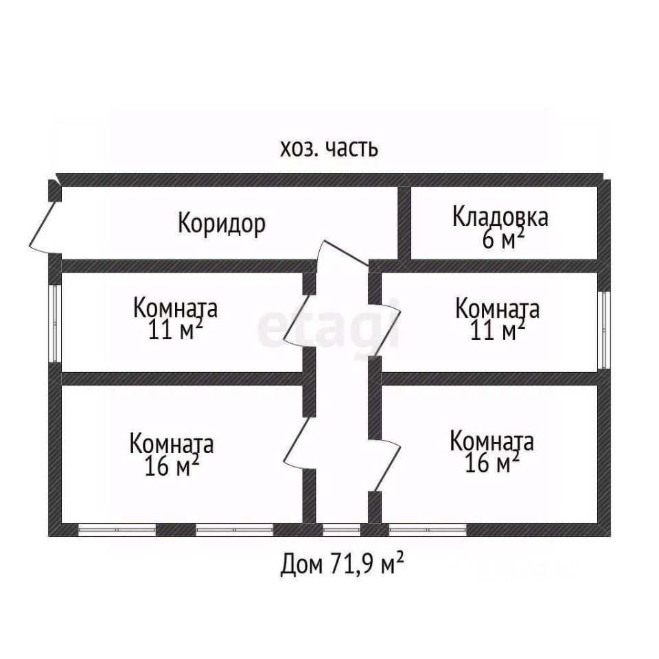 Площадь дома составляет 71,9 кв.м., построен из шлакоблока.