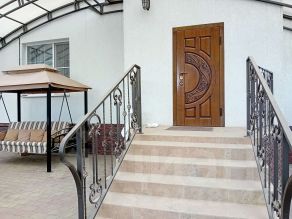 В дом ведет гостеприимная высокая кованная лестница, установлена красивая надежная дверь с тремя степенями защиты