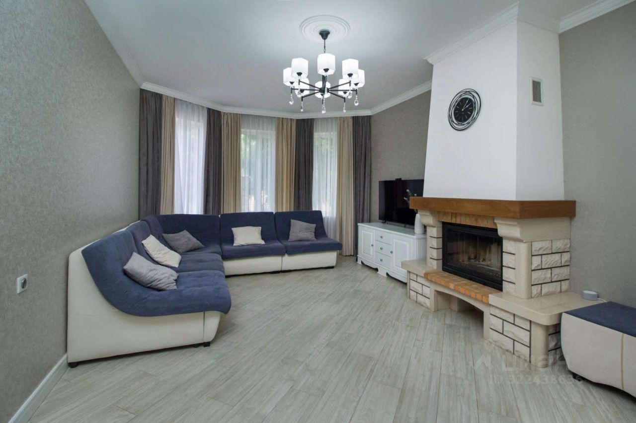 В доме 6 комнат, каминный зал, монолитная лестница отделанная буком, кабинет, 2 санузла, въезд под гараж организован на 4 машины, уютная беседка с зоной барбекю, детская площадка с мягким покрытием. Вокруг дома терасса из палубной доски. Красивая аллея из врослых туй расположена по периметру участка. Проводной интернет.