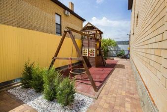 - участок самый высокий, отсыпан отсевом на 50 см, бетонное основание, придомовая территория отделана брущаткой, выложены дорожки из дорогой брущатки и плитки по всей территории участка, установлено уличное освещение