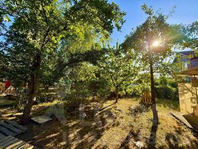 Участок размежёван, земля в собственности, не в долях. Фасад участка 20 метров. Во дворе есть парковка для 2х авто. Длина участка 32 метра. За домом чистый ухоженный сад-огород с взрослыми плодовыми деревьями груши, яблоки, вишня, сливы, орех и виноградником. К дому ведёт отсыпанная грунтовая дорога.