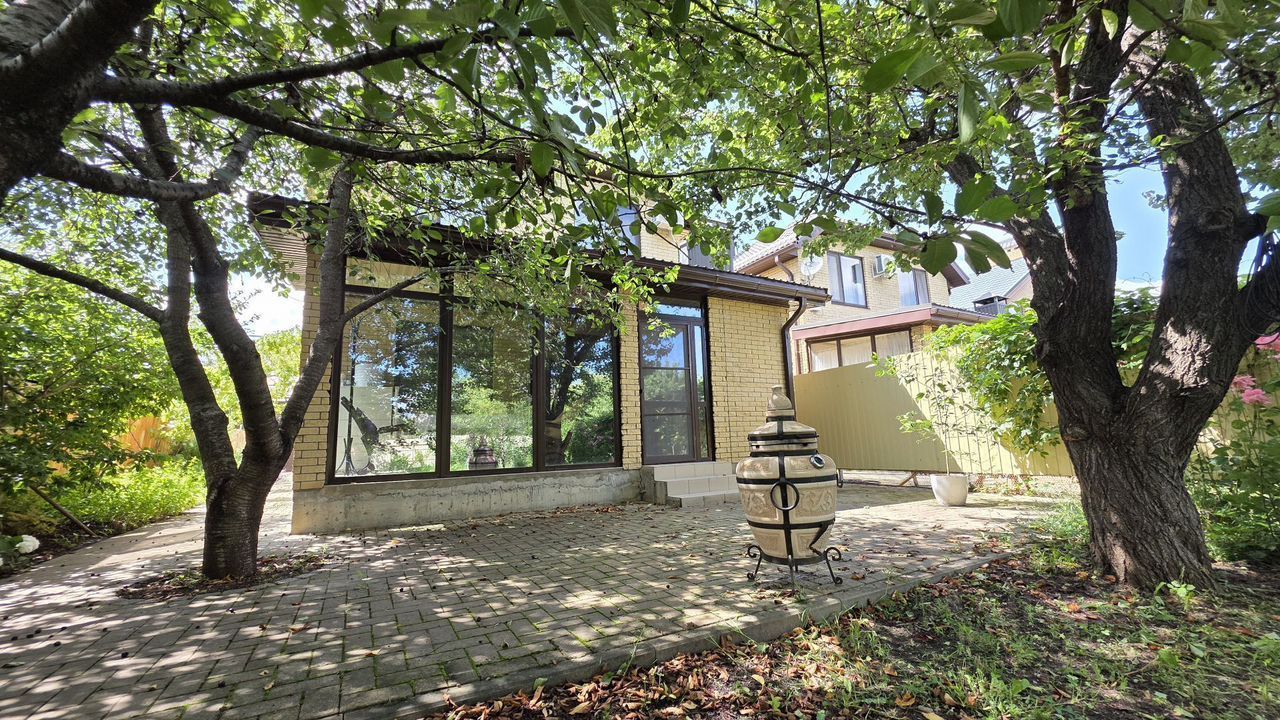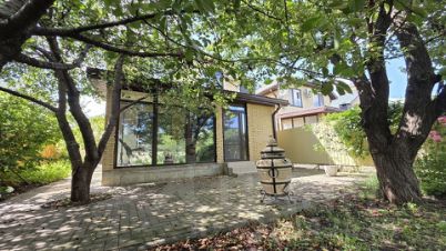 Дом с ремонтом под ключ и частично с мебелью. На земельном участке имеются плодоносящие деревья. В доме на первом этаже распологается холл, санузел, кухня -гостиная с витражным остеклением и выходом в сад через террасу с камином.