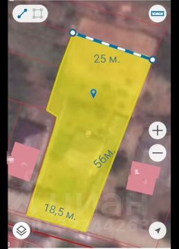 Фасад 18 метров, длина участка 56 метров а задняя часть участка 25 м. расширение идёт с середины участка.