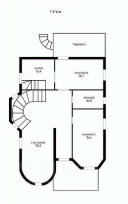 Высота потолков 4.5 метра - в комнатах, 9 метров - в гостиной