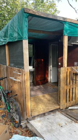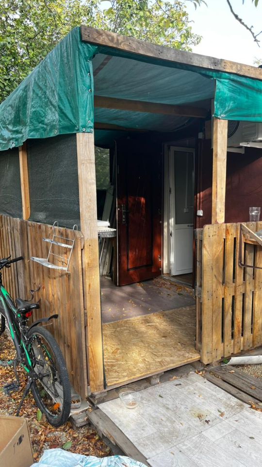 в доме унитаз, душевая кабина, насос. установлен бак для воды.