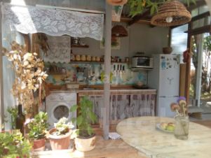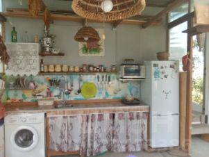 Дом площадью 90кв.м, из Сип Панелей ЦСП, с утеплителем каменная вата; двухэтажный, имеет четыре спальные комнаты, кухню, две ванные комнаты на каждом этаже. С каждой комнаты выход на террасу с видом на залив. Оборудована зона отдыха в стиле бар. Посажен молодой плодоносящий сад. Есть теплица, и второй саманный дом на 33кв.м, который можно использовать по Вашему желанию.