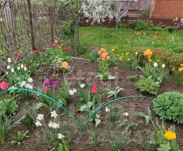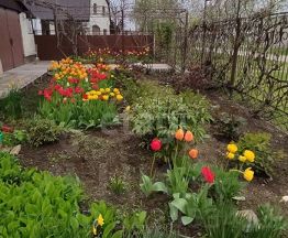 На земельном участке имеется теплица из поликарбоната, сад с плодовыми деревьями, ягодными кустарниками. Большой цветник с различными цветами (розы, тюльпаны, пионы, маки) - который будет радовать глаз.