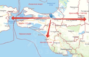 Так же не далеко от дома находится Музей Военная горка, Река Кубань и Курчанский лиман. До Азовского моря 7 км., до Черного моря 55 км., до Крымского моста 90 км.