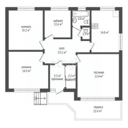 Продается блочный дом общей площадью 108 кв. метров на земельном участке 10 соток. В доме 4 жилые комнаты 14,9/ 16,1/ 11,6/ 22,4 кв. метров, кухня 14,8 кв. метров, санузел 1,5 кв. м. и душевая 4 кв. м., прихожая 5,3 кв. м., гардеробная 2,5 кв. м., холл 13,1 кв. м. Коммуникации подключены: водопровод, электричество, газовое отопление (котёл). Земельный участок большой, ровный, угловой. Есть возможность для строительства хоз. построек. Развитая инфраструктура: новый д/сад в 300 метрах, спортивный комплекс "СКИФ", магазины, остановка общественного транспорта. Все в шаговой доступности! В 20 км. Азовское море. Аэропорт и ЖД вокзал Анапа 30 км. Дом подходит под материнский капитал, ипотеку. С нами преференции от ведущих банков.