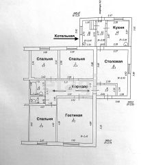 Квартира площадью - 97 кв. метров: 4 жилые комнаты 9,3/ 11,4/ 11,9 / 19,2 кв. м., кухня, столовая, раздельный сан. узел, котельная. Так же к дому пристроен гараж. Из дополнительных построек на участке - баня с комнатой отдыха/ летней кухней. Наружная отделка дома, гаража и бани - штукатурка. Двор огорожен забором из металлопрофиля.