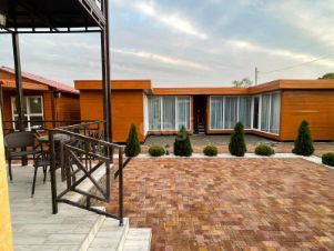 Продаётся современный коттедж на берегу Азовского моря, с двумя гостевыми домиками на участке. Дом построен в 2021 году по индивидуальному проекту. Сделан качественный ремонт из дорогих отделочных материалов, напольное покрытие на первом этаже выложено плиткой, на втором постелен ламинат, стены внутри и снаружи покрыты венецианской штукатуркой покрыта дорогостоящим лаком. В доме площадью 120 кв. м. имеется:
