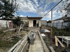 Продается 2 комнатная квартира на земле в г.Темрюке в районе 17 остановки. Отдельный вход и свой двор. Участок угловой, отопление газовое, есть электричество, вода. В доме две комнаты, кухня и прихожая, потолки высокие 2,7 м., площадь участка 3 сот. В шаговой доступности: остановка, детский сад, магазины, школа. Во дворе залит фундамент для увеличение жил площади около 100 квадратных метров. На территории есть фруктовые деревья, подсобное помещение. До Азовского моря 15 км. до Черного 50 км. Звоните!.