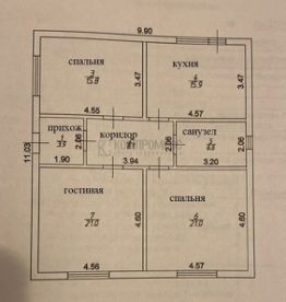 В доме- три спальни, кухня-гостиная с выходом на террасу, 25 кв.м., холл, прихожая, санузел.