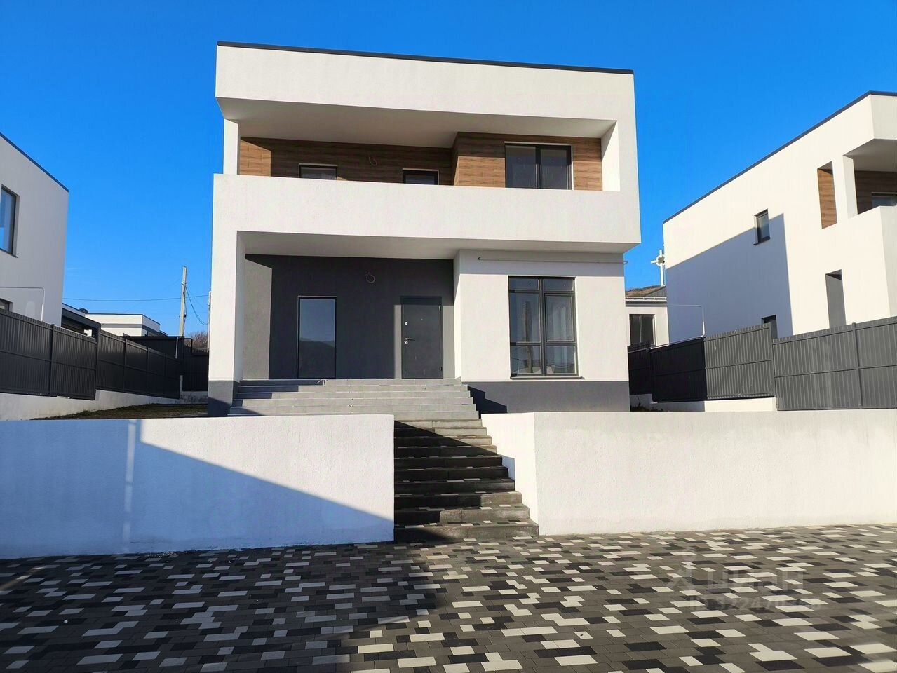 Прекрасный панорамный вид на город и горы! Дома в едином архитектурном стиле Дорогая облицовка Участок огорожен забором -Огромная терраса Предчистовая отделка(стяжка, штукатурка), так же проведена электрика, сантехника и тёплые полы, асфальтированный заезд, частная территория.
