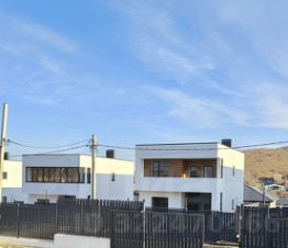 Прекрасный панорамный вид на город и горы! Дома в едином архитектурном стиле Дорогая облицовка Участок огорожен забором -Огромная терраса, выполнен качественный ремонт, так же проведена электрика, сантехника и тёплые полы, асфальтированный заезд, частная территория.