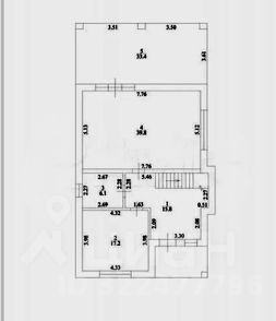 В доме — современная планировка: крыльцо, холл 15,8 кв.м, совмещенный санузел 6,1 кв.м, изолированная комната 17,2 кв.м, просторная кухня-гостиная 40 кв.м с выходом на крытую террасу 33,4 кв.м и задний двор, лестница на второй этаж монолитная — на первом этаже.