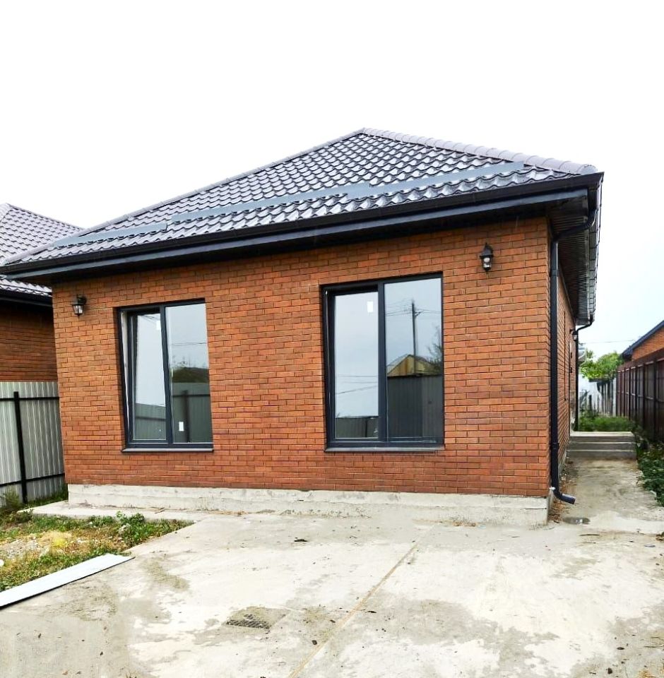 Коттедж общей площадью 100 кв.м. современной планировки: холл 10, 4 кв.м, три изолированных спальни, совмещенный санузел, котельная, кухня-гостиная с выходом на террасу.