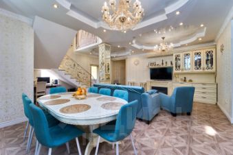 Дом укомплектован мебелью из ценных пород дерева. Ремонт выполнен по эксклюзивному дизайнерскому проекту, оснащен мебелью из качественных импортных материалов и ценных пород дерева. Комнаты очень светлые и просторные.