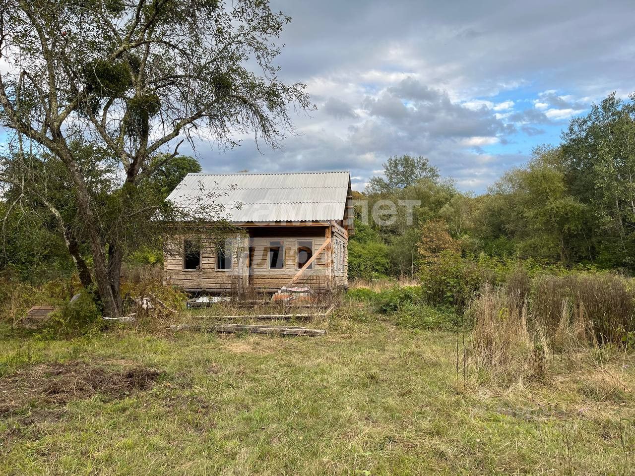 6). На участке стоит недостроенный дом из дубового бруса, который находится на реставрации. Уже заменены некоторые венцы, сделана мансарда и новая крыша из шифера.