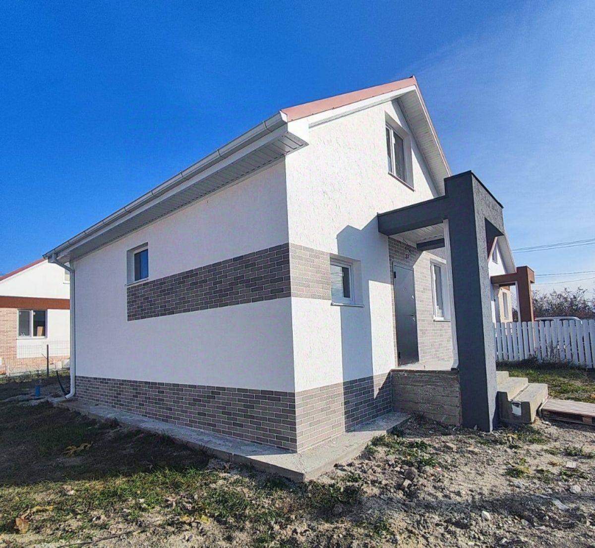 В доме предчистовая отделка: стены готовы под покраску или обои, разведены тёплые полы, установлены радиаторы, механическая стяжка пола.