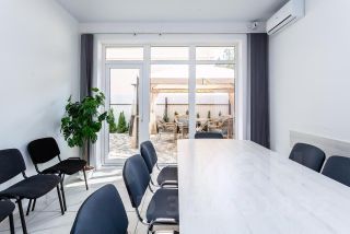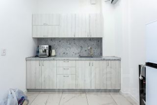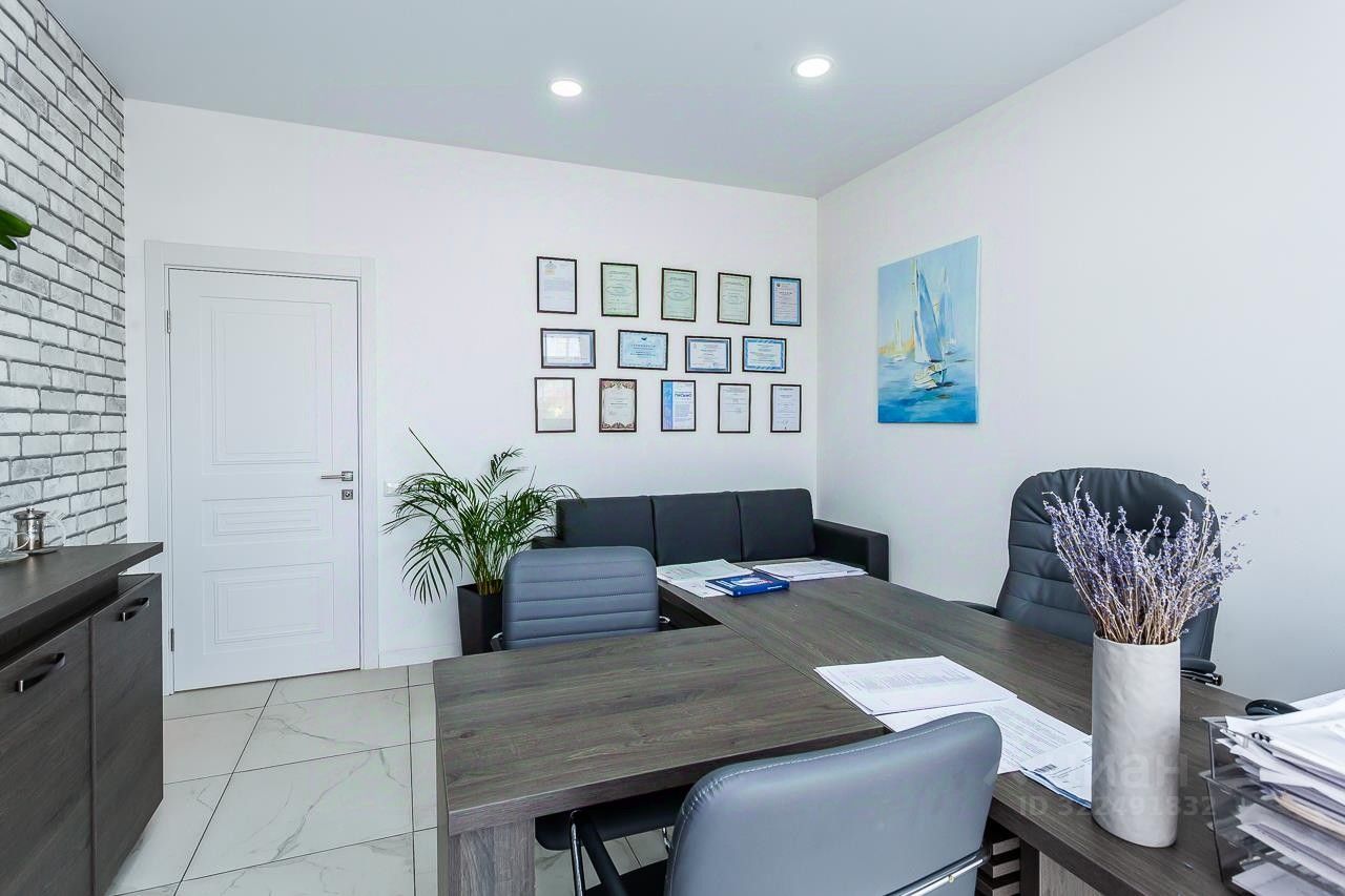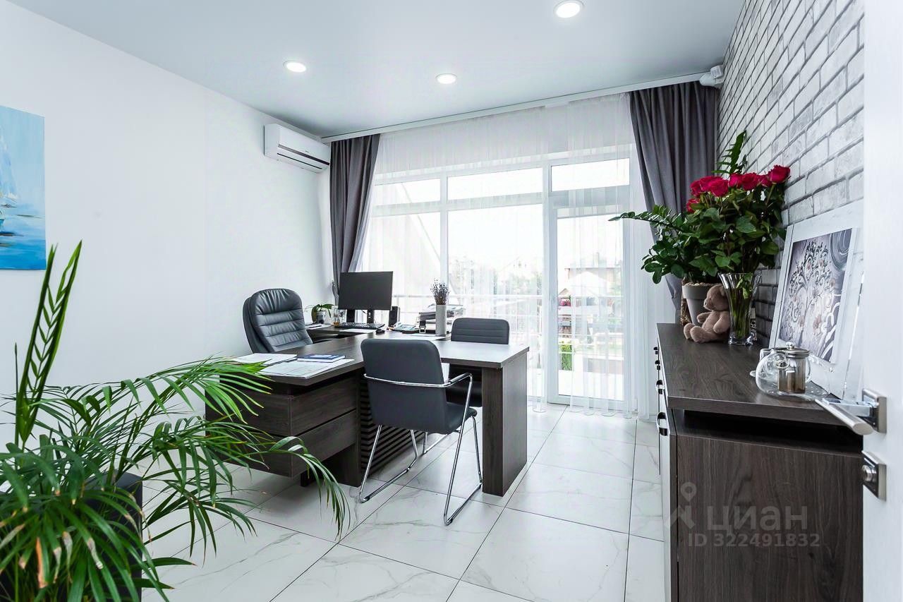 На данный момент дом используется под долгосрочную аренду серьезным арендатором, поэтому сделаны дополнительные некапитальные стены в кухне-гостиной для увеличения количества кабинетов. Сейчас их 7. При желании стены убираются и остается большая кухня- гостиная 43 м2.