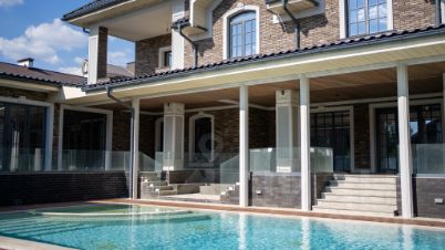 Крыша керамическая черепица, на фасаде клинкерный кирпич ручной формовки, окна из алюминиевого профиля Reynaers, так же одного из лучших производителей.