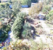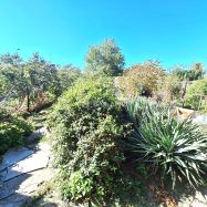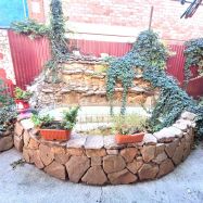 Участок 6,45 соток. Есть въезд и парковочное место для машины. Оборудован фонтан с прудом, места для отдыха. Растут плодовые деревья, в том числе хурма и гранат.
